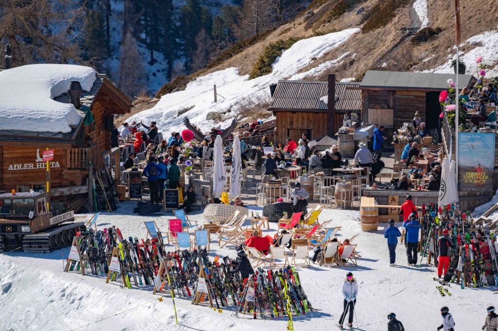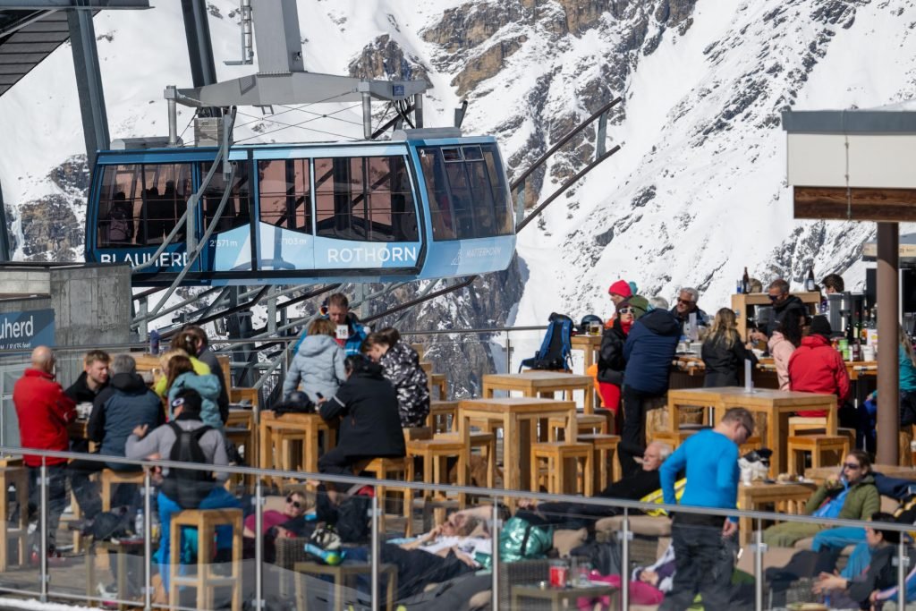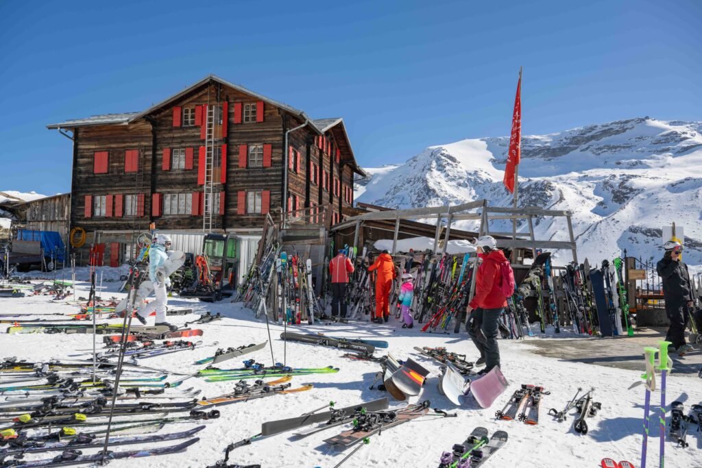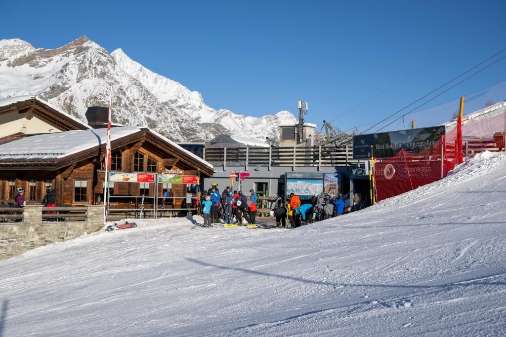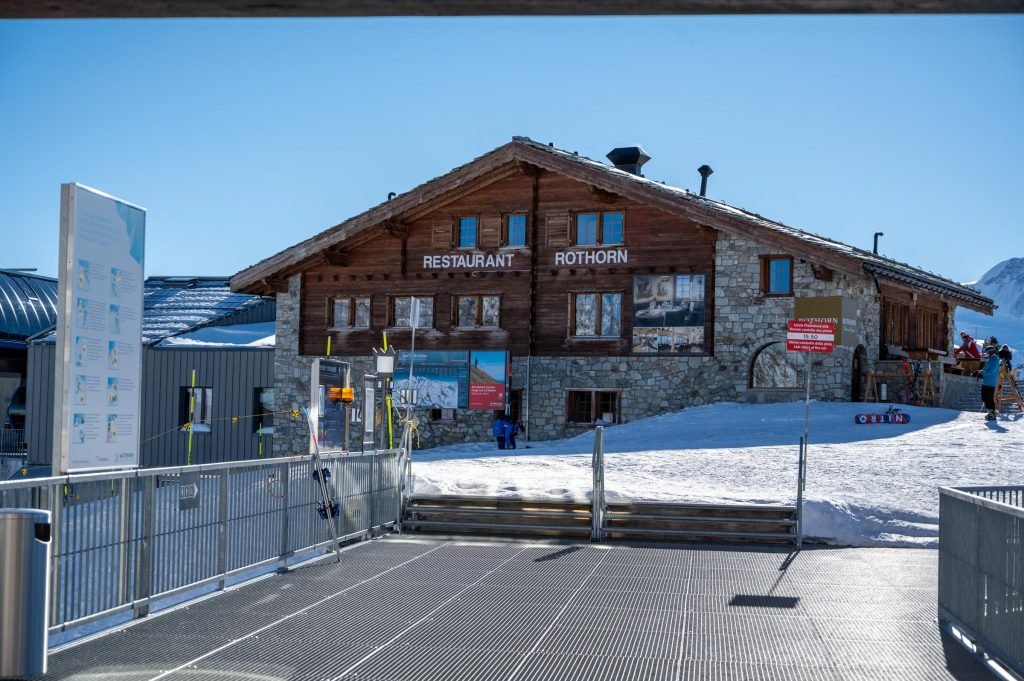 One of the best locations for a restaurant anywhere in the Alps. Situated beside the Tuftern piste (9) and with a view that could be soaked up for hours, this is a good stop after skiing from Blauherd or the Kumme piste from Rothorn.