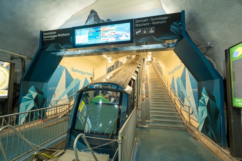 A high speed funicular train whisks you from the river at the north end of town to Sunnegga where you can start exploring the ski area