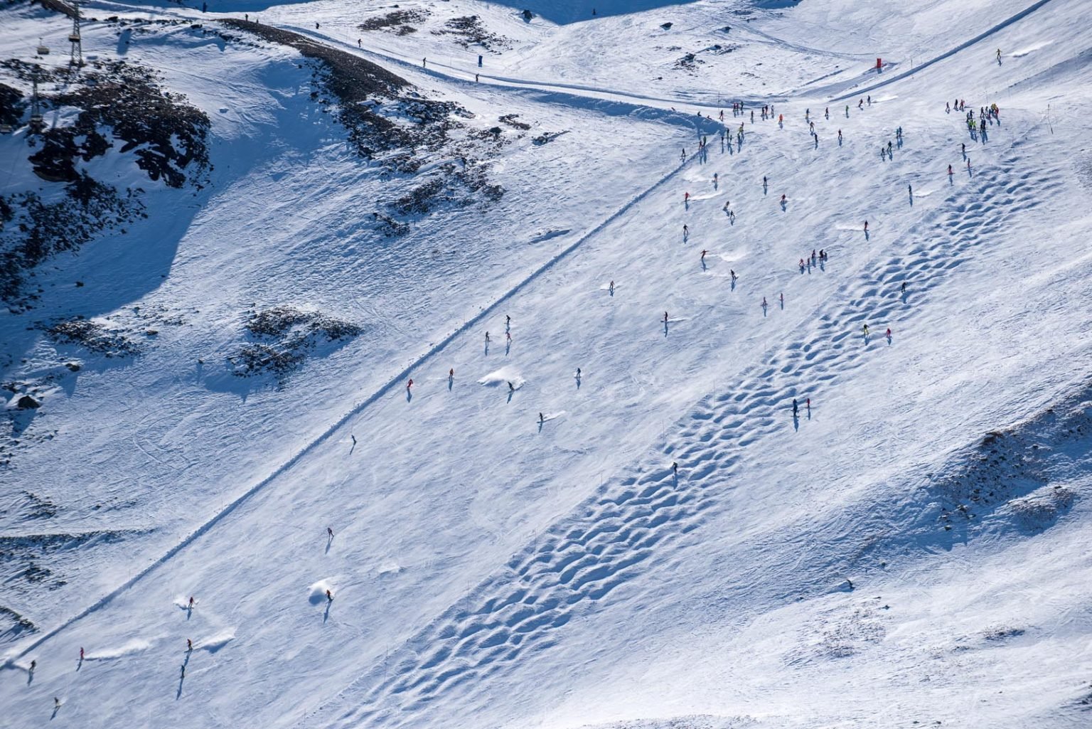 The red run, or “Big Dipper” (Red 35) as I think only I call it, is a challenging red with huge undulations and real steepness in places. The red run below the chair and finishing in Furi is great but does have narrow sections along it way.
