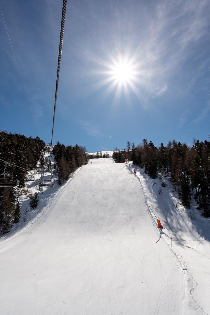 It is worth bearing in mind that you you will also need to be happy skiing red pistes if you plan to ski back to town at the end of the day. The steep sided valley that the village sits in means there are no Blue runs to town.